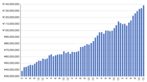 2億円まで1年5ヶ月、3億円まで2年11ヶ月、5億円まで4年10ヶ月。